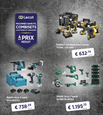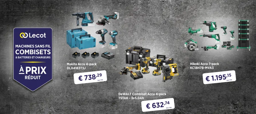 Lecot.shop est la boutique en ligne promotionnelle de Lecot, destinée aux professionnels et aux bricoleurs exigeants. Vous y trouverez une offre unique d'outils de qualité, avec régulièrement des promotions et des offres exceptionnelles. Cela inclut non seulement des machines sans fil et des machines électriques, mais aussi des machines de jardin et outils de jardin, des outils à main, des instruments de mesure, des équipements de protection individuelle et vêtements, des produits chimiques, des matériaux de fixation et des quincailleries de construction.