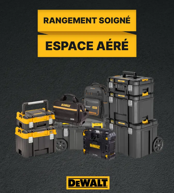 Prêt à offrir une base solide à vos outils ? Lecot.shop ajoute les solutions de rangement DeWALT à son assortiment ! Chacune avec son style unique et sa robustesse, spécialement conçues pour rendre votre travail plus facile, plus fluide et plus élégant. Pour vraiment impressionner vos clients.