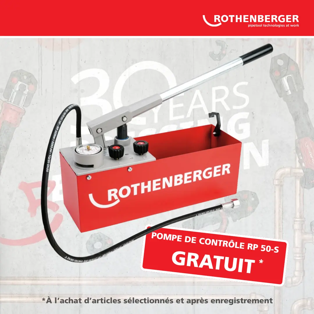 - Après validation de votre participation, Rothenberger vous enverra votre pompe d’essai RP 50S gratuite.