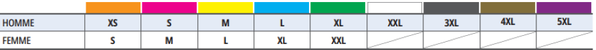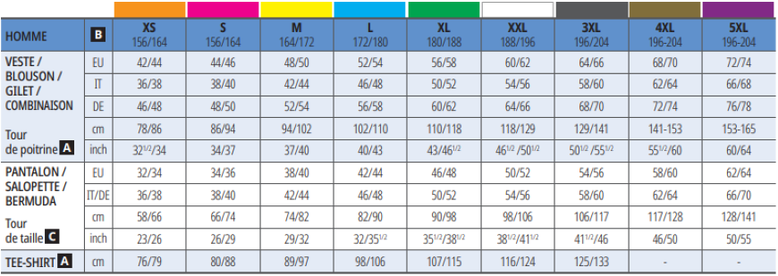 pas du vêtement. - Pour les vêtements supérieurs, le tableau de tailles prend en compte le fait que