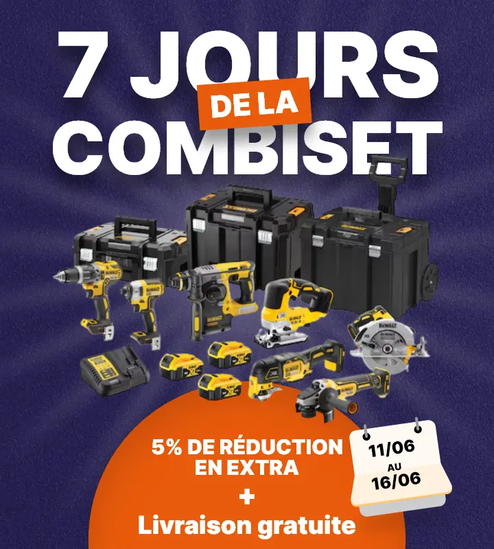 - Économique : commander plusieurs appareils en une seule fois vous fait toujours bénéficier d'un avantage de prix. De plus, une combiset inclut souvent des extras comme des batteries, un chargeur de batterie ou même une boîte de rangement. Ainsi, la somme est toujours supérieure aux différentes parties.