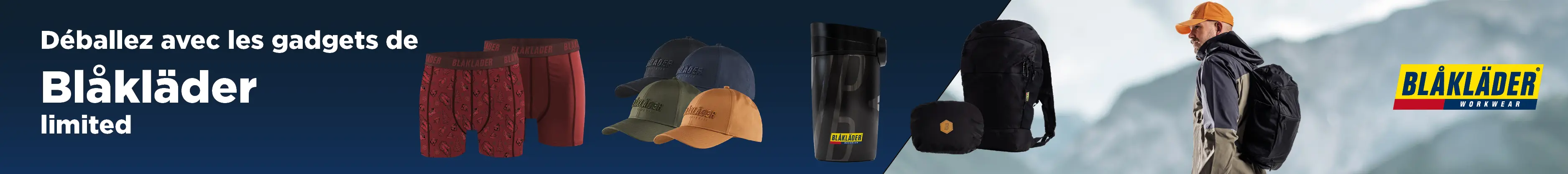 Blåkläder ne se distingue pas seulement par des vêtements de travail de qualité supérieure, mais vous surprend aussi avec de gadgets exclusifs ! Pour l’achat de pantalons de travail, hoodies ou vestes d’hiver sélectionnés, recevez un cadeau unique gratuit. Que vous choisissiez une casquette, un thermos, un boxer ou un sac à dos, avec Blåkläder vous êtes toujours parfaitement équipé.
