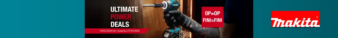 Améliorez votre outillage avec les Makita Ultimate Power Deals. Du 16/02/2026 au 27/03/2026 inclus, profitez de prix avantageux (remise déjà incluse dans le prix) ou d’un accessoire gratuit à l’achat de machines Makita sélectionnées. Le moment idéal pour renouveler votre outillage ou agrandir votre parc de machines Makita.