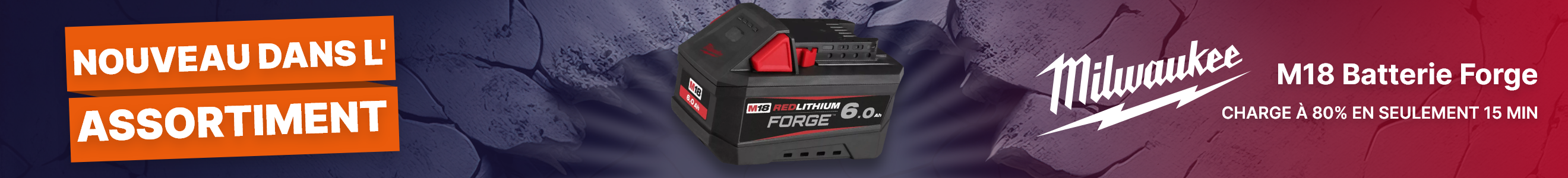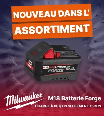 Booster votre énergie – ainsi que celle de votre équipement – n'a jamais été aussi facile qu'avec la nouvelle batterie M18 Redlithium Forge de Milwaukee. En seulement 15 minutes, rechargez votre batterie jusqu'à 80 %. Un superchargeur qui fait la différence sur le chantier ou dans votre atelier. Grâce à son format compact, le travail est plus léger et la batterie reste performante à chaque charge. Profitez de la durabilité et de la qualité que vous attendez de Milwaukee, et que vous appréciez tant.