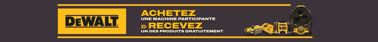 - Achetez une machine de jardin DeWALT participante pendant la période d’action du 1er mars 2026 au 30 juin 2026 chez Lecot.