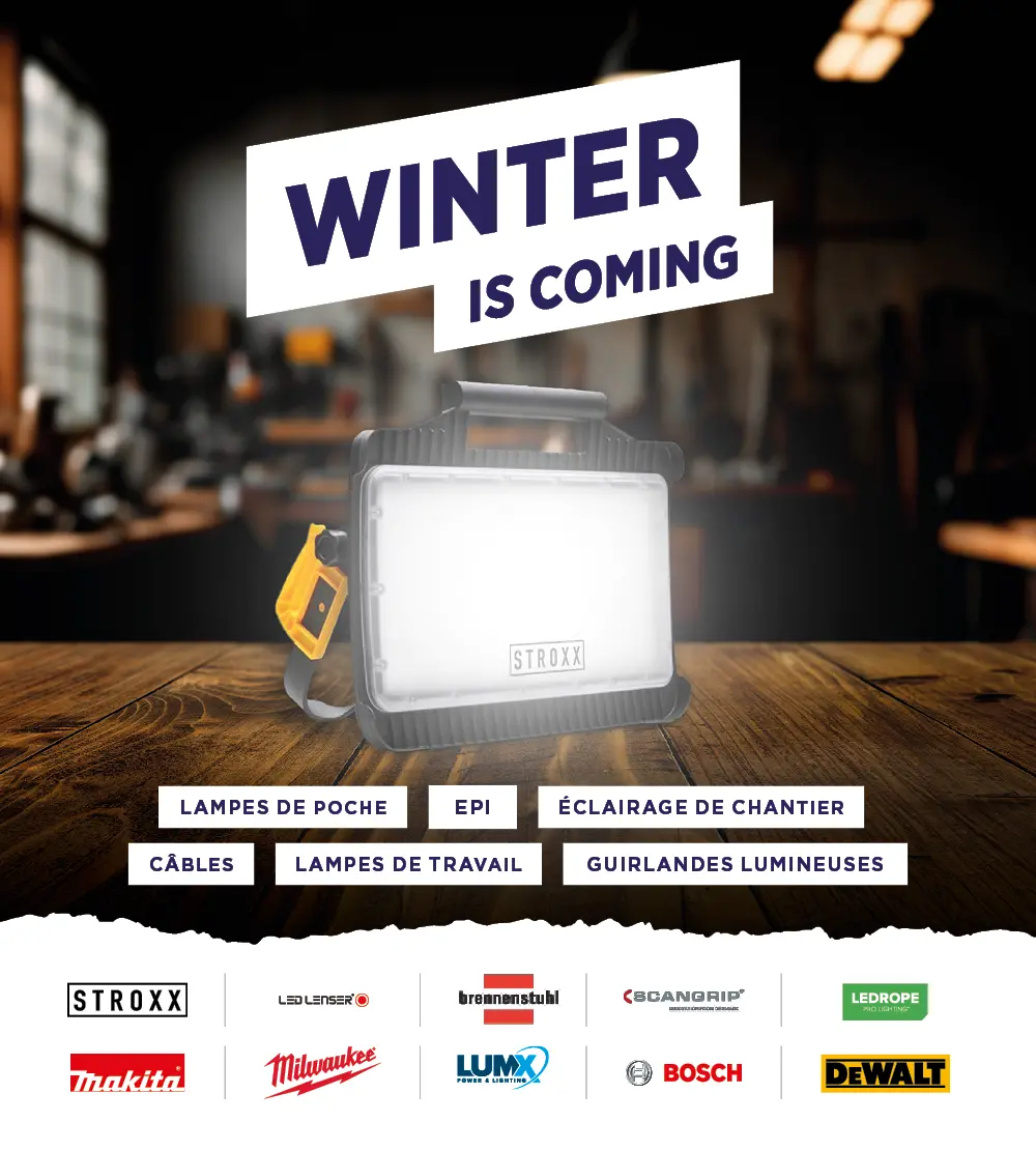 Avec ces produits phares, vous ne travaillerez pas dans l’obscurité. Que vous rêviez de plus de lumière, de câbles solides ou d’une protection bien au chaud pendant les longues nuits froides : avec ces offres hivernales, vous êtes paré.