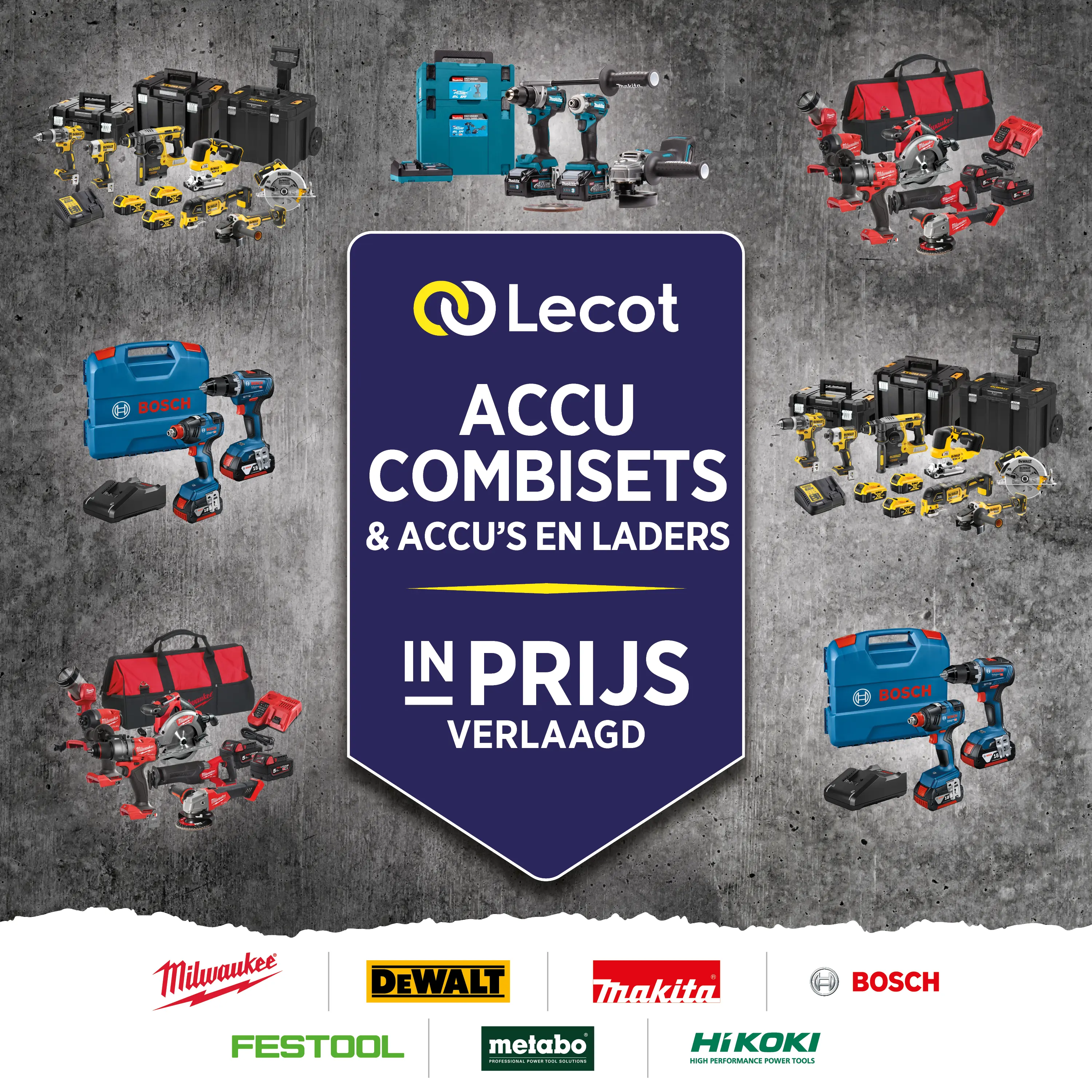 Lecot.shop is de online promotionele webshop van Lecot, voor de vakman en stevige klusser. Hier vind je een uniek aanbod aan topgereedschap met regelmatig uitzonderlijke deals en acties. Dit omvat niet alleen accu- en elektrische machines, maar ook tuinmachines en -gereedschap, handgereedschap, meetgereedschap, persoonlijke bescherming en kledij, chemicaliën, bevestigingsmaterialen en bouwbeslag.