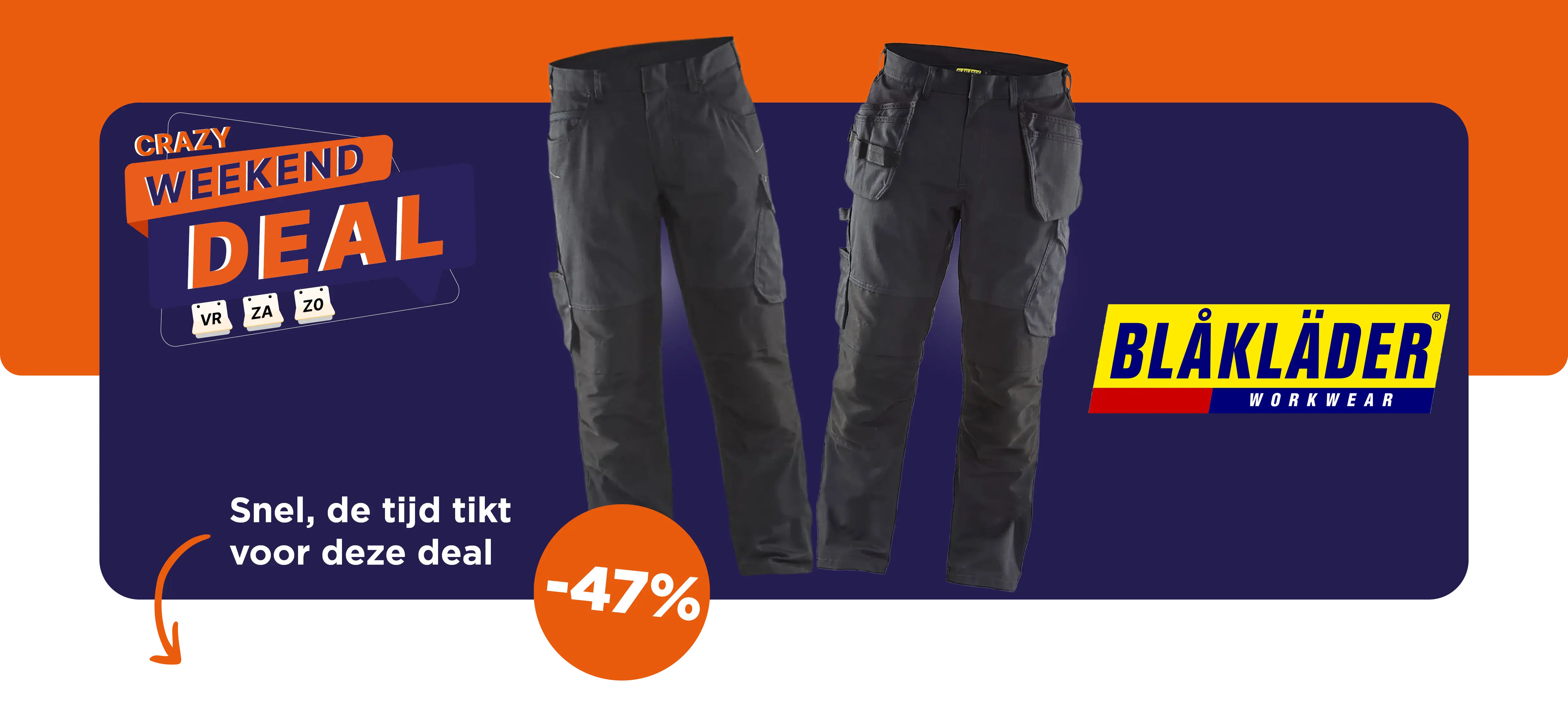 Twee broeken. Eén doel: maximaal comfort en topprestaties op de werkvloer. Met Blåkläder kies je voor kwaliteit, stretch en stevigheid in één. Grijp dit weekend je voordeel en werk in stijl!