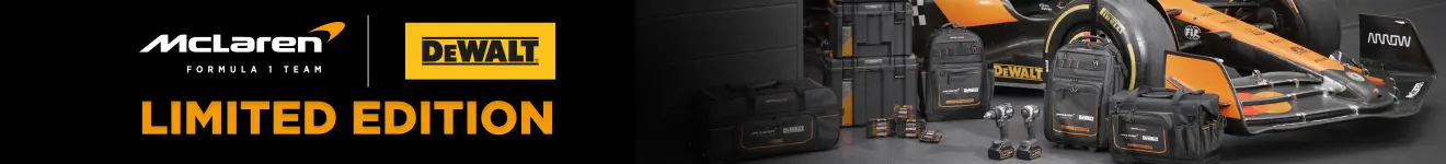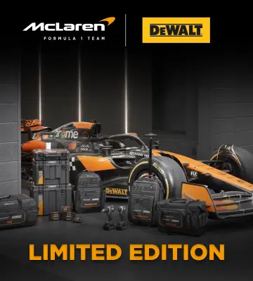 Klaar om een versnelling hoger te schakelen op de werf? DeWALT sloeg de handen in elkaar met F1-autofabrikant McLaren. Met hun limited edition reeks geef je plankgas op elke werf. Niet met piepende banden, maar met goed geoliede tools. Lecot zet je op polepositie om je slag te slaan.
