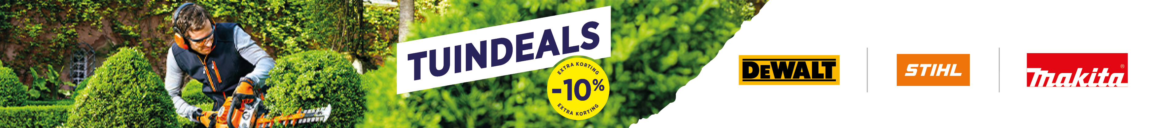 Profiteer van 16 maart tot en met 31 mei van 10% korting op machines van Makita, DeWALT en Stihl. Ideaal om je tuin, werkplaats of werf perfect voor te bereiden op het nieuwe seizoen.