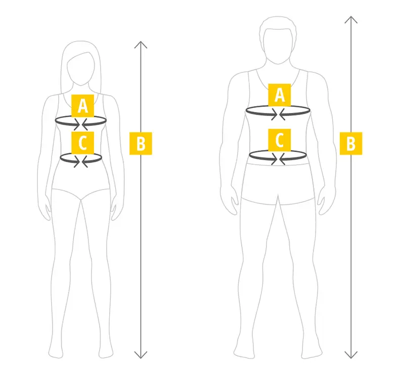 Om de correcte maat te nemen, meet u rechtstreeks op het lichaam zonder aan te spannen.
