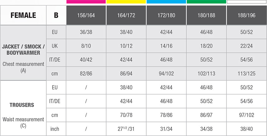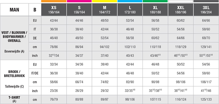 - de maten die u aantreft in de tabellen zijn die van het lichaam,