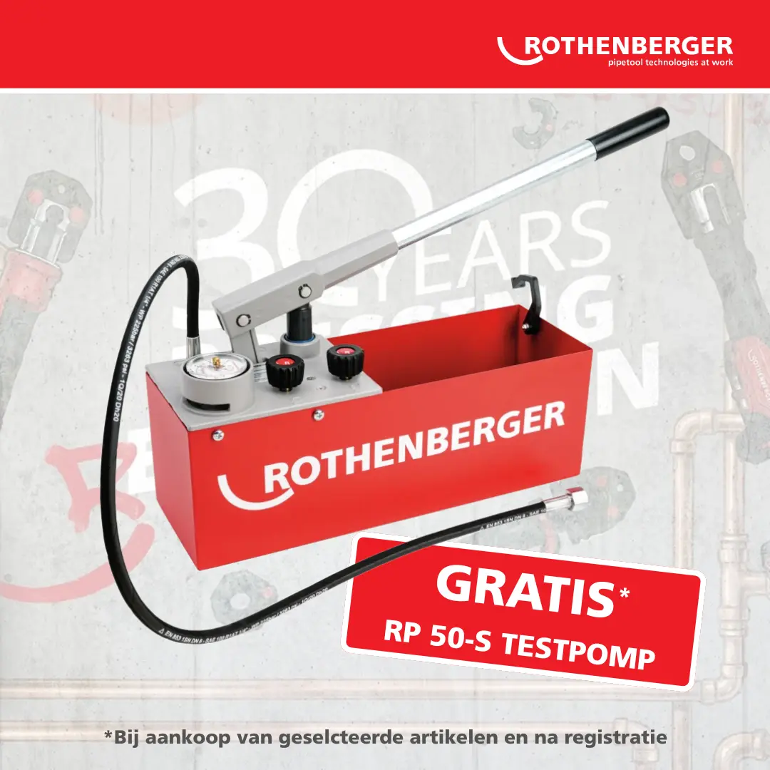 - Na succesvolle deelname stuurt Rothenberger uw gratis testpomp RP 50S op.