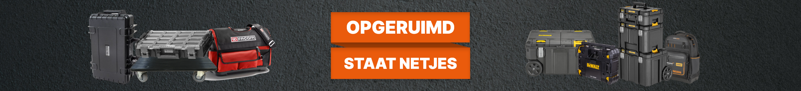 Klaar om je gereedschap een oersterke thuisbasis te geven? Lecot.shop breidt het assortiment uit met opbergoplossingen van DeWALT, STROXX, Facom en SAM! Elk merk biedt unieke stijl en kracht, speciaal ontworpen om jouw werk efficiënter, gestroomlijnder en stijlvoller te maken. Maak een blijvende indruk op je klanten met deze topmerken. Ontdek wat deze toppers jou te bieden hebben.